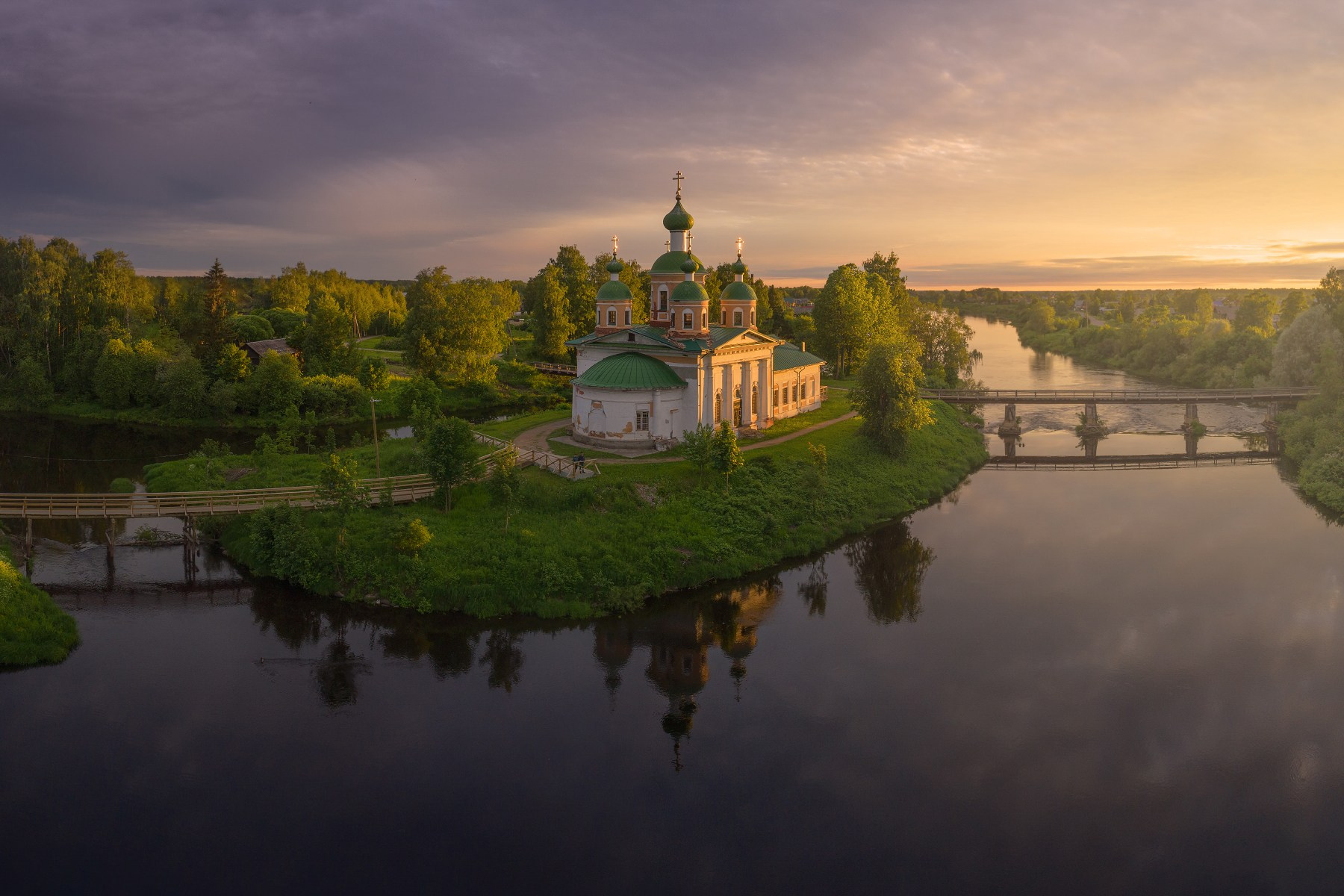 Деревянные церкви Межозёрья представляют собой уникальные памятники северного русского деревянного зодчества XVII–XIX веков. Здесь встречаются клетские, шатровые и ярусные храмы.
